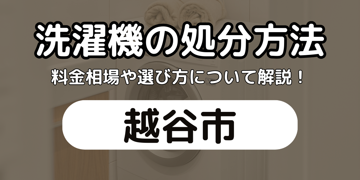 越谷市の公式情報でも、洗濯機を処分する際には、購入店舗や家電リサイクル協力店などを利用するよう案内されています。
