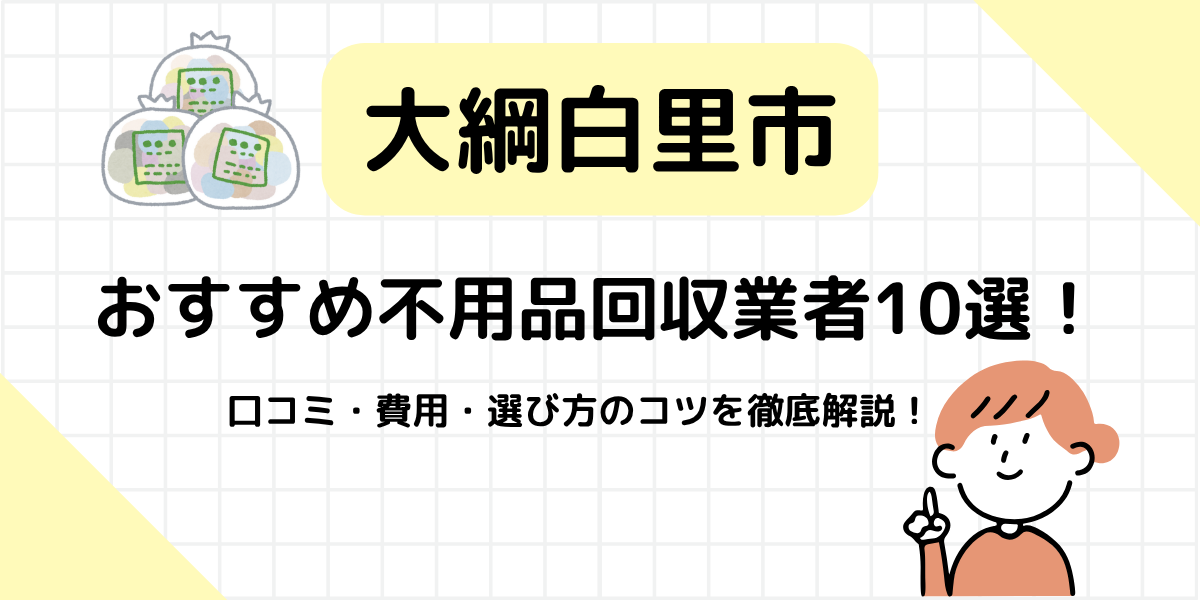 この記事では、大綱白里市で信頼できる優良な不用品回収業者を厳選し、業者選びのポイントから具体的なおすすめ業者まで詳しく解説します。適正な費用で安心して依頼できる許可業者のみを紹介しているので、初めての方でも安心です。
